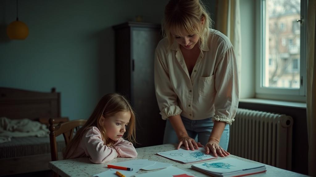 Полина подняла голову. Девочка сидела в пижаме, с фломастером в руке, и аккуратно дорисовывала хвост своей русалке. На кончике языка — след синей пасты.