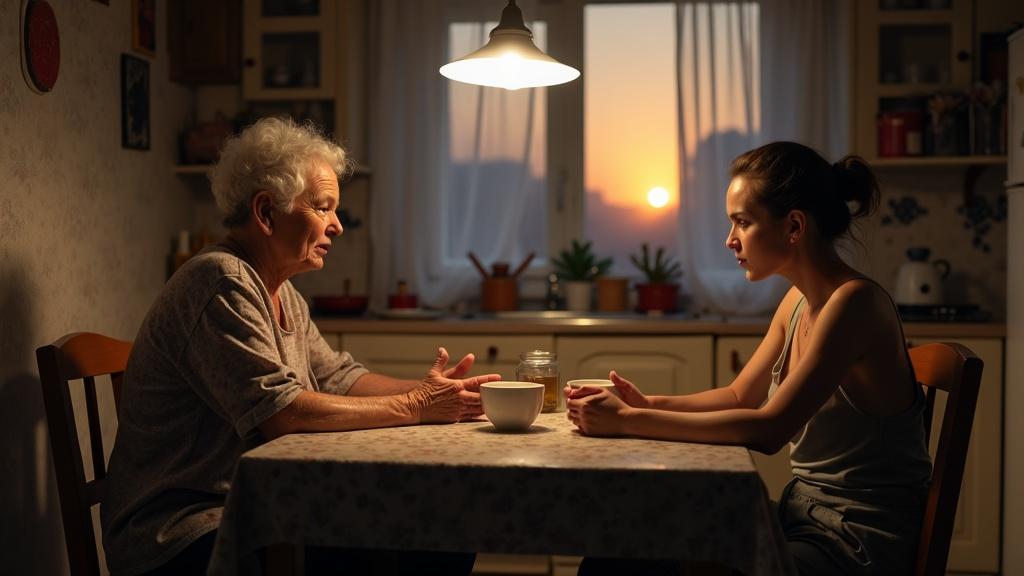 В комнате повисла тяжёлая тишина. Ольга Петровна отвернулась к окну, нервно теребя занавеску.