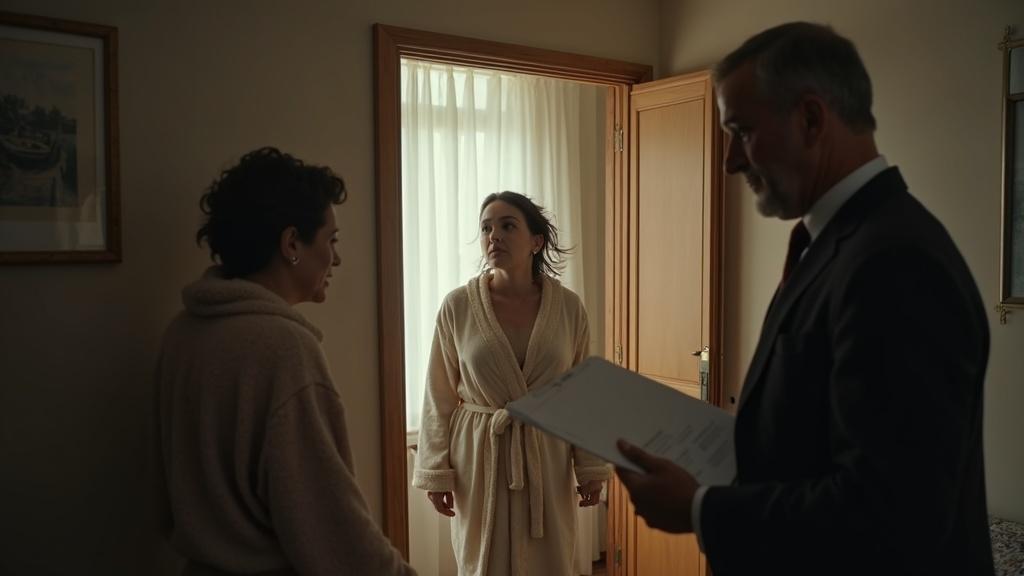 Она быстро накинула халат и вышла из спальни. В гостиной стояла Тамара Ивановна, её свекровь, и какой-то незнакомый мужчина с папкой в руках.