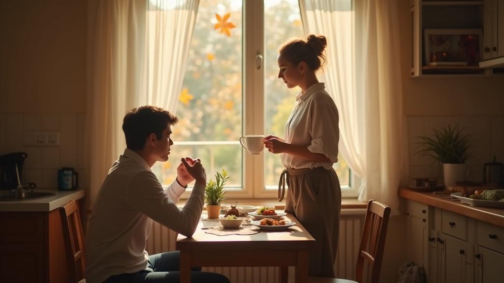 Она стояла у кухонного окна их съёмной квартиры, наблюдая, как первые осенние листья кружатся в воздухе. Солнечный луч пробивался сквозь занавеску, освещая её русые волосы, собранные в небрежный пучок. После десятичасового рабочего дня в банке она наконец-то могла расслабиться в своём маленьком уютном мире. Но слова мужа разбили эту идиллию вдребезги.