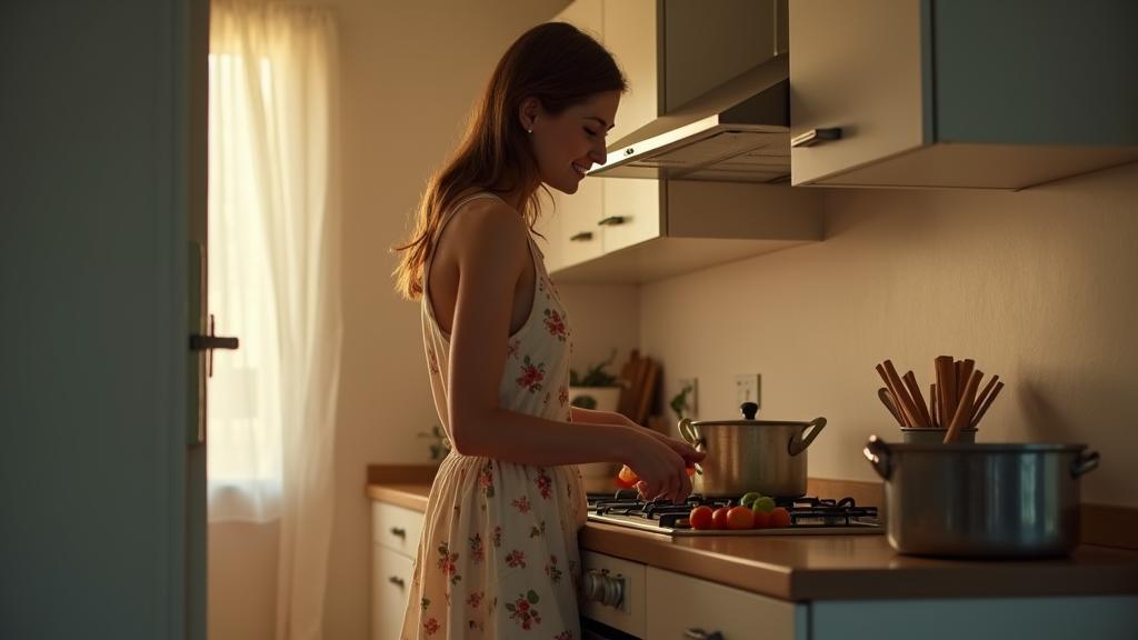 Женщина пробралась на кухню, выпила таблетку и потихоньку возвращалась в спальню.