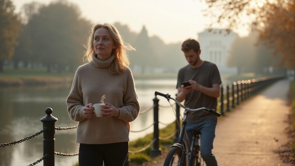 Запах кофе на мосту Вера всегда любила раннее утро, когда город ещё не проснулся, а улицы казались чуть менее строгими. Она шла по набережной, крепко сжимая в руке стакан горячего кофе. С недавних пор этот короткий путь к мосту стал её утренним ритуалом, хотя она и не могла объяснить, почему — просто хотелось видеть, как рассвет отражается в воде. На мосту почти никого не было. Лишь одинокий мужчина с велосипедом остановился у перил, проверяя что-то в телефоне. Вера встала неподалёку, делая вид, что любуется рекой. На самом деле она прислушивалась к себе. В последнее время мысли часто возвращались к вопросу: «А что дальше?» Дети выросли, муж с головой ушёл в работу, подруги были заняты своими семьями. Её дни были наполнены делами, но в них не хватало смысла, который раньше казался само собой разумеющимся. Вера сделала глоток кофе и почувствовала, как тепло медленно расходится по телу. Она вспомнила, как когда‑то вместе с дочерью по воскресеньям пекла пироги. Сейчас дочь жила в другой стране, и их разговоры свелись к коротким сообщениям. Вера не жаловалась — она понимала, что так устроена жизнь, но внутри что‑то тянуло, как тонкая нитка, которую не удаётся оборвать. Мужчина с велосипедом вдруг посмотрел на неё и улыбнулся. Она машинально кивнула в ответ, удивившись своей реакции. Обычно она избегала взглядов незнакомцев, но сегодня почувствовала странное спокойствие. — Хорошее утро, — сказал он негромко. — Да, — ответила Вера, — особенно на мосту. Он кивнул и посмотрел на реку. Несколько секунд они стояли молча, каждый в своих мыслях. Потом он ушёл, и Вера осталась одна, но почему‑то это одиночество не было тяжёлым. Скорее наоборот — оно напоминало лёгкое одеяло, под которым можно спокойно подумать. Она вспомнила, как всегда мечтала научиться рисовать, но откладывала это «на потом». Сейчас это «потом» выглядело иначе: время стало ценнее, чем казалось раньше. Может быть, пора попробовать? Возвращаясь домой, Вера чувствовала, как внутренний диалог становится тише. Мир вокруг не изменился, но она вдруг увидела в нём больше оттенков. В этот утренний час на мосту, среди запаха кофе и тихого города, она позволила себе задуматься не о том, что нужно сделать, а о том, чего хочется самой. Это был не ответ на все вопросы, но первый шаг к тому, чтобы слушать себя по‑настоящему.
