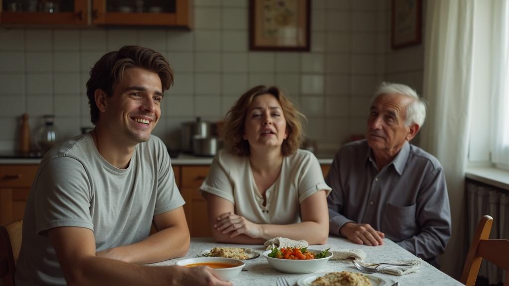 — Мам, пап, я женюсь! – с широкой улыбкой заявил Юра, садясь ужинать. Парень невозмутимо пододвинул тарелку с супом, делая вид, что не замечает шокированного взгляда матери.