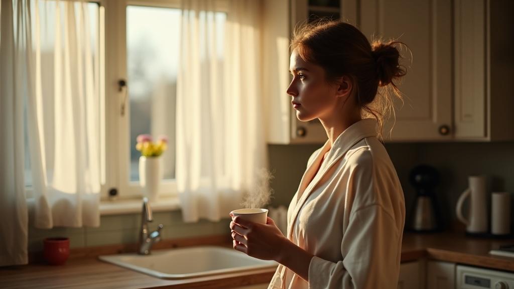 После первой брачной ночи Катя стояла посреди своей уютной кухни, сжимая в ладонях горячую чашку свежезаваренного кофе. Утренний свет пробивался сквозь тюлевые занавески, мягко скользя по полированным поверхностям модного гарнитура. Она задумчиво смотрела в окно, пытаясь уложить в голове, что первый день после свадьбы получался совсем не таким, как рисовало её воображение.