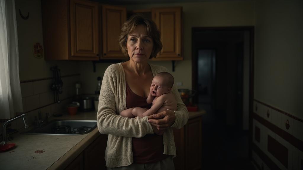 Наталья, с воспаленными глазами, стояла у плиты, помешивая кашу одной рукой, а другой поддерживая внука. Все тело болело, руки ходили ходуном от усталости.