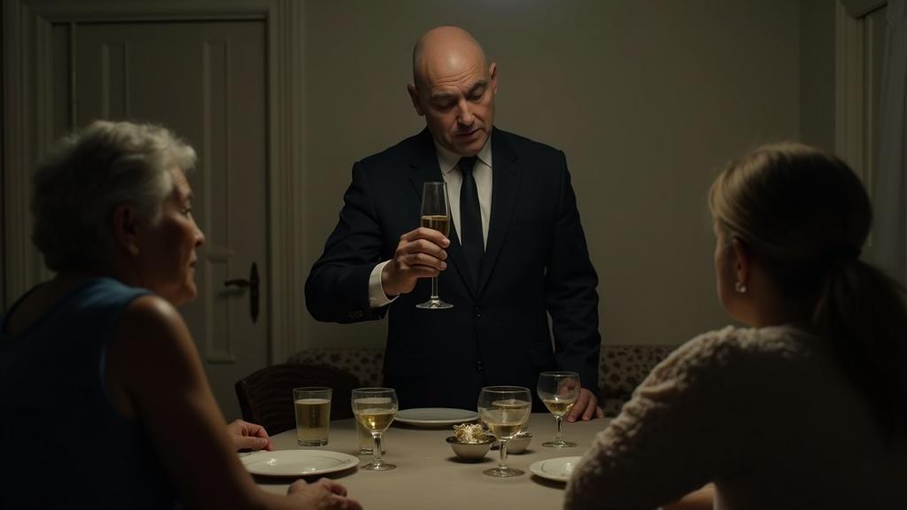 После его тоста за столом повисла тишина. Тяжелая, густая, как кисель. Мать побледнела и медленно опустила руки на колени. Отец нахмурился, его лицо покраснело.