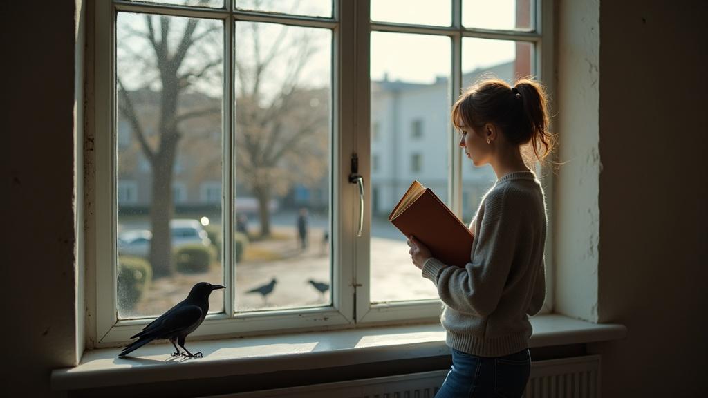 Юля стояла у окна в старом институтском корпусе, прижимая к груди толстенную книгу по физике, и смотрела вниз — на весенние лужи, на кучки студентов, которые болтали о чём-то, на ворон, дерущихся за булочную крошку. Она любила такие моменты: когда ты не часть толпы, а наблюдатель.