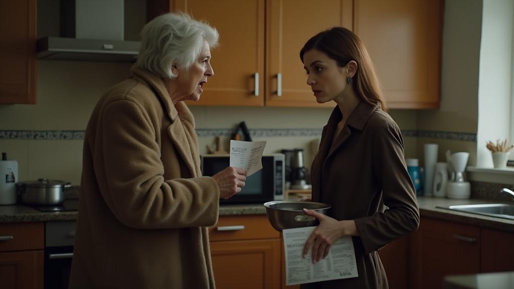 Лена замерла с кастрюлей в руках, не веря своим глазам. Свекровь стояла посреди их кухни в дорогой шубе, сжимая в руке какую-то бумагу. Её лицо пылало от негодования.
