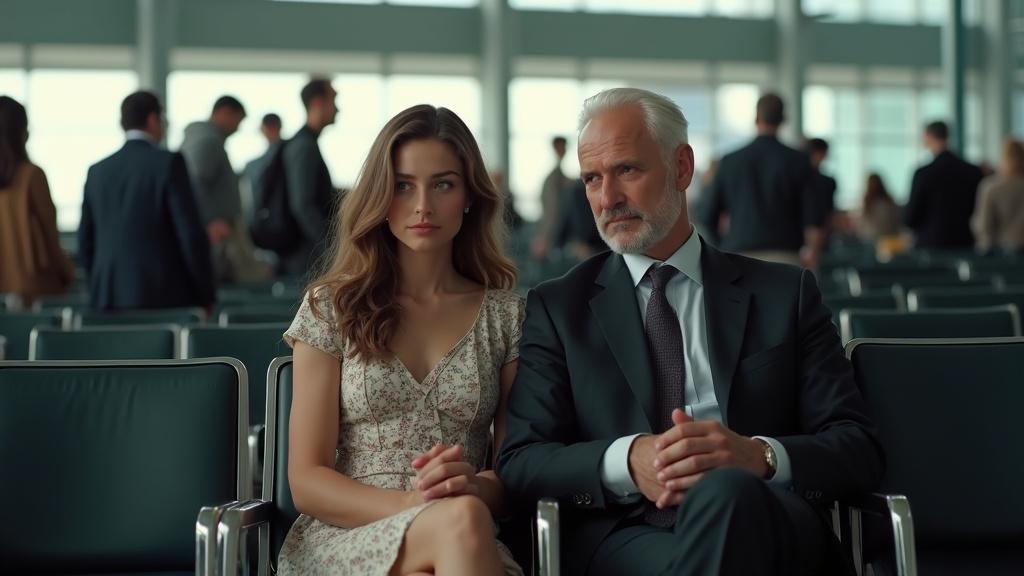 Полный зал пассажиров в столичном аэропорту. У окна, взявшись за руки, сидят отец и дочь. Оба заметно нервничают. Нина летит учиться в США, в самый престижный и дорогой вуз.