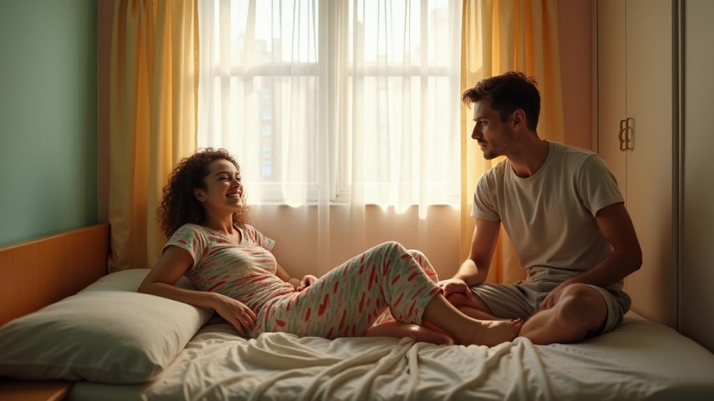 Денис радовался, видя такую живую, открытую и веселую девушку. Ураган эмоций, настоящих чувств. Улыбка сама собой появилась на лице. А глянув вверх, прикрылся сты_дливо подушкой.