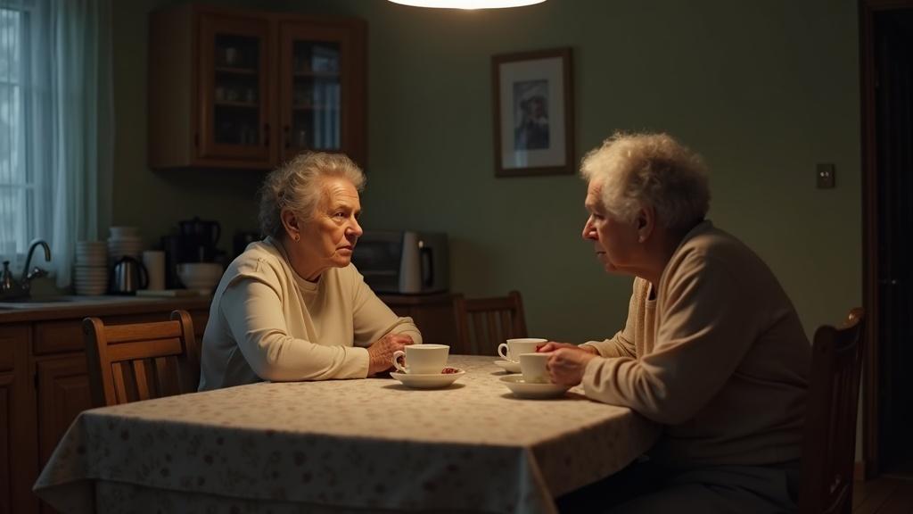 Поздний вечер в квартире на кухне. За столом сидят две женщины: пятидесятилетняя Маргарита и её мать Зоя Ивановна. Они выпили чай, но расходиться не собираются.