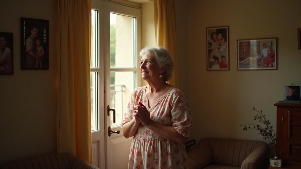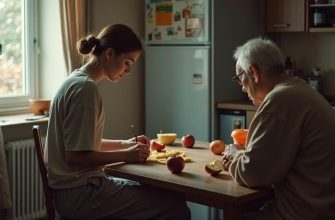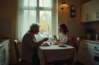 После ужина они сидят рядом на диване. Сын заботливо её обнимает, осторожно слушает ей пульс.