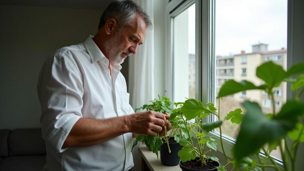 Между стволом и листом растёт пасынок. Вот его и удаляю.
