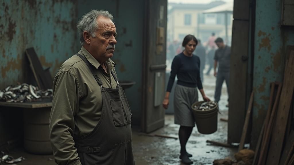 Она схватила пустое ведро и убежала на рабочее место. Барбара ловко справлялась с рыбой. Егор стал ее разглядывать. Стройные ножки в галошах, серая юбка, вязанный свитерок, цветастый платочек.