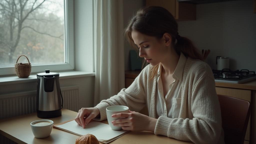 Серый свет медленно растекается по кухне, делая привычные вещи чуть бледнее. Я сижу за столом, обхватив ладонями кружку, и смотрю на сложенный вдвое лист бумаги. Письмо, написанное почти год назад, лежит между сахарницей и тарелкой с недоеденным круассаном — как случайный гость, о котором все забыли. В кофейнике на плите ещё слышится слабое бульканье, и в воздухе держится терпкий запах свежесваренного кофе. Я не спешу наливать себе вторую чашку: утро тянется лениво, за окном морось, и даже птицы будто не решаются громко петь. Алексей мелькает в проёме — ищет ключи, что-то бормочет себе под нос, потом уходит в коридор. Я остаюсь одна с этим письмом, которое год пролежало в ящике для ненужных бумаг. Странно, что рука не поднялась выбросить его раньше. Наверное, потому, что каждое слово в нём — как маленькая заноза, которую невозможно вытащить, не почувствовав боль. Я провожу пальцем по краю бумаги. Шелест — тихий, почти неразличимый. Строчки знакомы наизусть: «Наташа, я не знаю, как так вышло…» Дальше — объяснения, попытка оправдаться, признание, что скучаю. Мы не разговаривали с ней уже шесть лет, после той глупой ссоры из-за пустяка. Тогда казалось, что гордость важнее. Теперь — только пустота, которую не заполняет ни работа, ни редкие встречи с общими знакомыми. Я вспоминаю, как мы с Наташей сидели на этой же кухне, спорили о рецептах, смеялись над нелепыми историями из юности. Это письмо — единственная ниточка, что осталась между нами. Но стоит ли её натягивать? Может, она давно порвалась, и я только тешу себя иллюзиями? В коридоре хлопает дверь. Алексей возвращается, кивает мне: «Я сейчас, не забудь про зонт — дождь усилился». Я киваю, не отрывая взгляда от письма. Встаю, беру конверт, аккуратно вкладываю листок внутрь. Сердце стучит чуть быстрее обычного. Почему-то кажется, что этот шаг — не просто попытка вернуть прошлое, а возможность снова поверить в себя. Я надеваю мягкий вязаный кардиган, накидываю лёгкую куртку, беру зонт. На лестничной клетке пахнет сыростью и чем-то знакомым, как в детстве, когда мы с Наташей вместе бегали по этим же ступеням. Я спускаюсь вниз, и с каждым шагом становится легче. У почтового ящика останавливаюсь, ещё раз ощущаю в руке тонкую бумагу. Шелест — как дыхание надежды. Письмо, которое так долго лежало без движения, наконец отправляется в путь. И пусть я не знаю, что будет дальше, но утро становится чуть светлее. ☔️