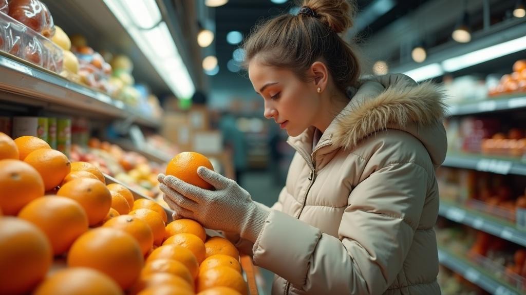 Мандариновый след на ладони Оранжевое пятно на варежке появилось внезапно: сетка на витрине магазина с мандаринами, чуть сильнее сжатая, лопнула — один плод выскользнул, зацепил «сугроб» из искусственного снега на фруктовой полке и скатился вниз, оставляя в зале тонкий цитрусовый аромат. Я машинально нагнулась, поймала его. Сняла варежку — проверила, цела ли кожица. И тут же вспомнила привычное зимнее сомнение: брать или нет? Каждую зиму колеблюсь — вдруг будут горькие или как в тот год, когда все оказались «деревянными» на вкус. И всё же верчу плод в руках — на вид хороший, а мне нужен тот самый, из детства. Раннее морозное утро. На полу у входа — свежая пороша, хлопья успели прилипнуть к капюшону моего пуховика. Людей мало. У кассы работает Ольга — светлый объёмный свитер, быстрая улыбка. По залу тянутся скрипы тележек, слышен тихий писк сканера — звуки кажутся глуше обычного. Лампы режут белым светом пакеты и россыпи фруктов, подчёркивая их оранжевую «солнечность» на фоне серых стен. Я поворачиваю мандарин в руках, пытаясь уловить под коркой запах. Не резкий, а лёгкий, с намёком на хвою. В этот почти невидимый момент память возвращает меня к маленькой квартире, маминым голосам из кухни, запаху ёлки. Тогда эти фрукты были почти праздником — казалось, их хватало, чтобы растопить самую хмурую зиму. — Брать будете? — Ольга наклоняется, ловя мой сомневающийся взгляд. — Думаю. В прошлом году попались сухие — обидно было… — Сегодня партия отличная, сама пробовала. Хотите — попробуйте дольку, — улыбается она. Я благодарю, аккуратно надрываю хвостик, чувствую шероховатую кожу и всё-таки отделяю дольку. Вдыхаю свежий, едва уловимый аромат — и вдруг он смешивается с «холодным» запахом супермаркета, становясь тёплым и очень личным. Настроение меняется, зимняя хандра отступает на шаг. — Беру, — говорю наконец, не столько умом, сколько на ощущении «хочу». Короткий сигнал сканера — я подаю сетку. Снег на рукаве тает, Ольга мимоходом подмигивает. Я улыбаюсь ей, себе и этому небольшому чуду: оказывается, запах мандарина всё ещё может согревать. Сетку прячу в сумку. На ладони остаётся оранжевый след, чуть липкий. Как тихое напоминание: даже в морозный день можно унести с собой кусочек праздника.