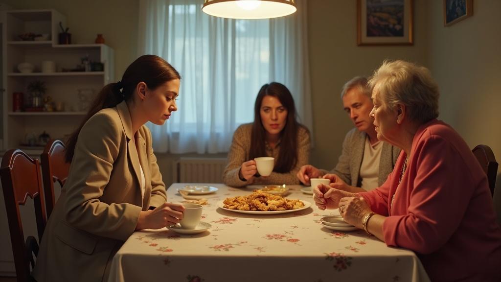 Наталья глубоко вдохнула, стараясь сохранить спокойствие. Семейный обед по случаю дня рождения Ларисы Петровны снова превращался в поле битвы. Она аккуратно промокнула салфеткой пролитый кофе и подняла глаза на золовку.