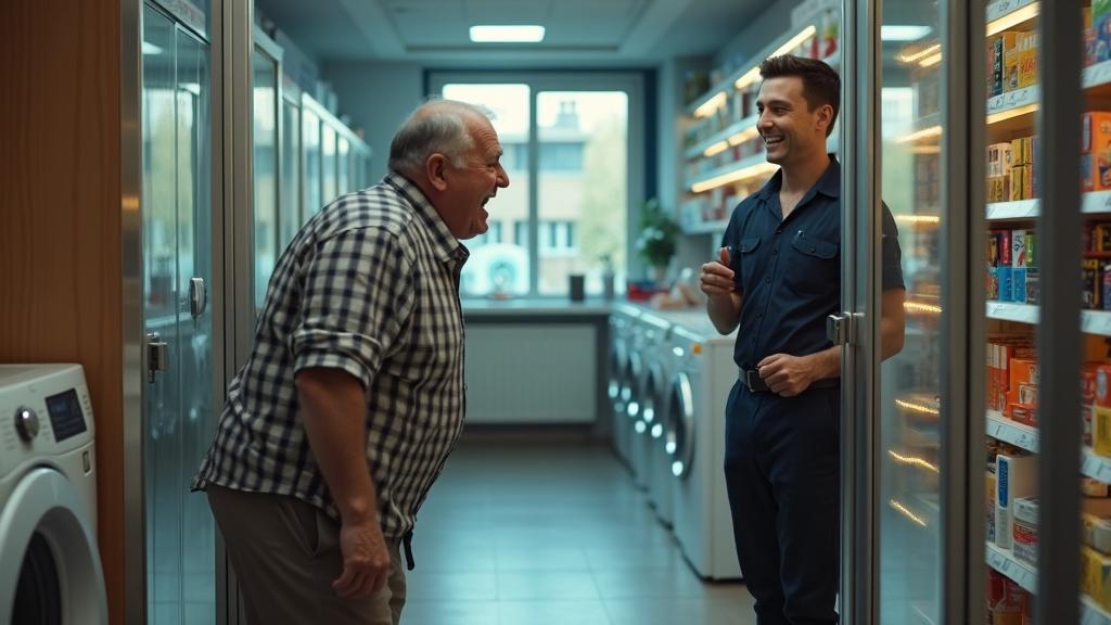 Женя вел покупателя специальными окольными путями, проводя экскурсию по скидочным товарам. Но мужчине не приглянулся ни моющий пылесос за семьдесят тысяч, ни двухдверный холодильник, в котором можно хранить оленя целиком, ни даже кофеварка, что сама варит кофе по голосовой команде за сто тысяч рублей.