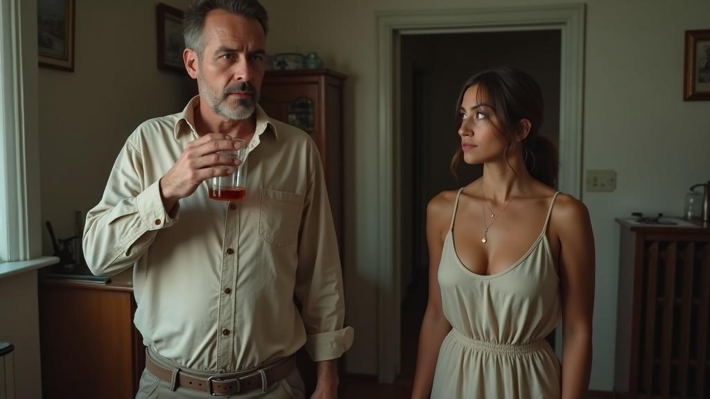 Как-то вечером, когда женщина уложила детей спать, она села на кухне, и покосилась на ящик, где у ее мужа стояло спиртное. Она схватилась за голову, и заплакала.