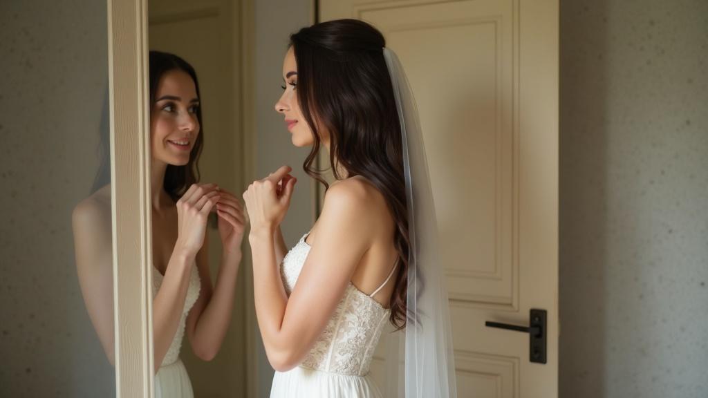 Юля стояла перед зеркалом, поправляя белоснежную фату. Её отражение сияло от счастья, а в глазах плясали озорные искорки. Платье цвета слоновой кости идеально облегало стройную фигуру, подчеркивая все достоинства молодой невесты.