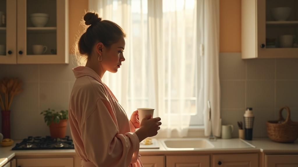 После первой брачной ночи Катя стояла посреди своей уютной кухни, сжимая в ладонях горячую чашку свежезаваренного кофе. Утренний свет пробивался сквозь тюлевые занавески, мягко скользя по полированным поверхностям модного гарнитура. Она задумчиво смотрела в окно, пытаясь уложить в голове, что первый день после свадьбы получался совсем не таким, как рисовало её воображение.
