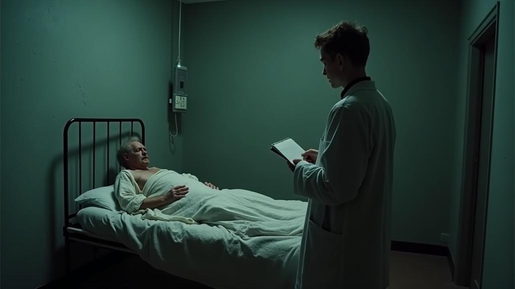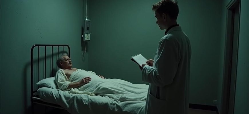 Оторвав взгляд от пустой страницы блокнота, я наткнулся на совершенно заурядный внешний вид пациента: стерильная больничная рубашка, растрёпанные седые волосы на голове, спутанная борода, стекавшая с впалых щёк, отёки под глазами, когда как сами глаза немного выделялись и словно бы отражали скорбь запертого в клетке безумия человека.