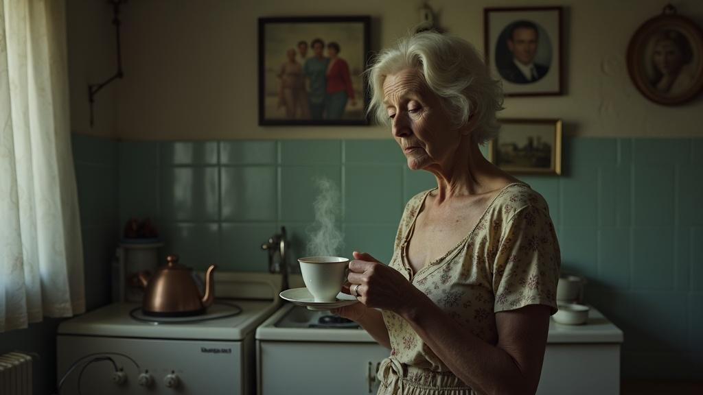 Кухня пустая. Раньше думала — маленькая она у нас, тесная. А теперь вон какая огромная оказалась. Сижу за столом одна, и места хватает, и ещё остаётся. На стене фотографии висят — свадьба наша, дочки маленькие, внуки… Смотрю на них, а они будто за стеклом, далеко-далеко.