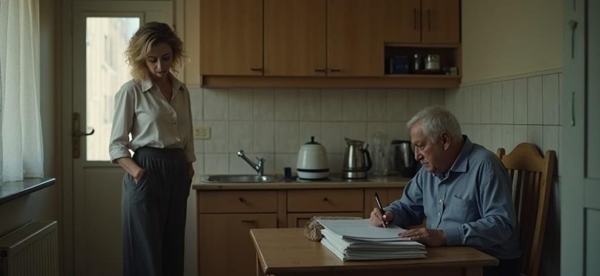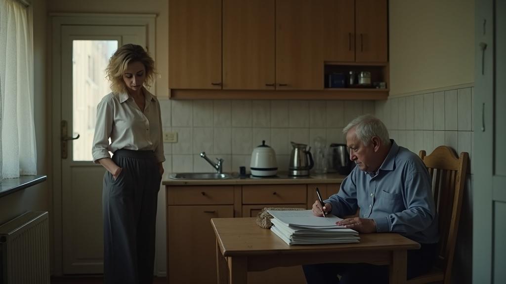 Лариса открыла дверь и почувствовала, как холод дома ударил по лицу. Не просто прохлада — настоящий холод равнодушия. Валерий сидел за кухонным столом, не поднимая головы. Перед ним лежала кипа бумаг, аккуратно разложенных веером.