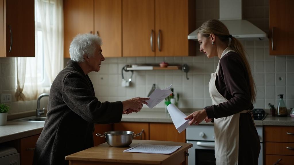 Входная дверь открылась. Вошёл Андрей — муж Марины. Он сразу понял, что происходит что-то неладное. Его мать стояла посреди кухни с красным от гнева лицом, а жена держала в руках какие-то бумаги.
