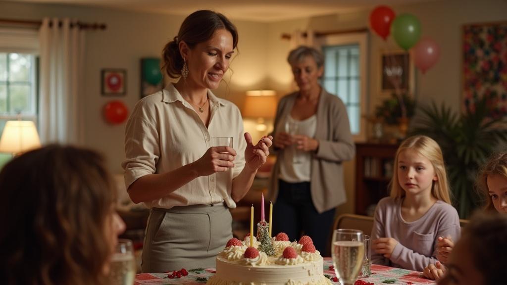 Это был последний удар. Марина почувствовала, как что-то внутри неё обрывается, как струна, натянутая слишком сильно. Она посмотрела на дочку — Соня перестала улыбаться, глазки забегали между мамой и бабушкой. Потом на мужа — тот усиленно изучал свой телефон. На гостей — они старательно делали вид, что ничего не происходит.