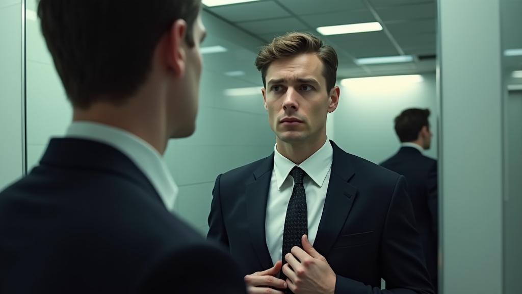 Руслан стоял перед зеркалом в туалете департамента, нервно поправляя галстук.
