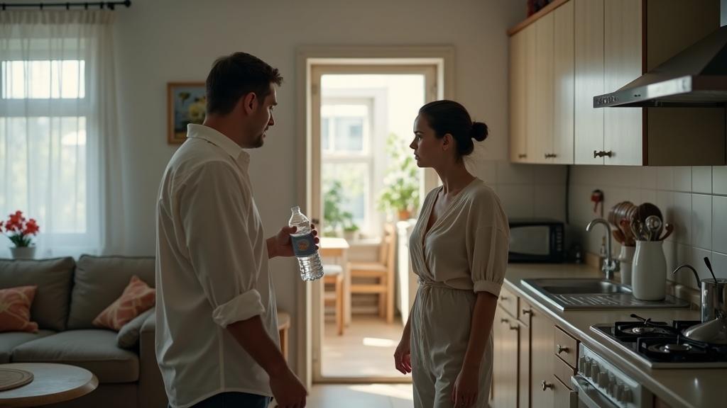 Виктор вздохнул, открывая холодильник и доставая бутылку воды. Его широкие плечи ссутулились, будто он пытался спрятаться от её слов.