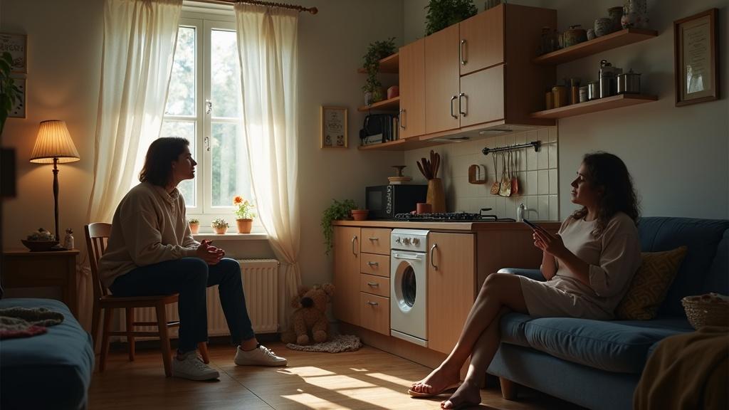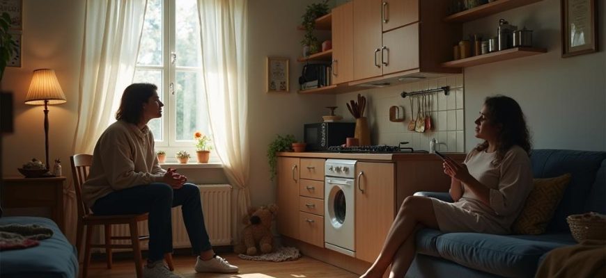 В этот момент Алина впервые увидела их кухню словно чужими глазами: колотый кафель рядом с раковиной, который Вадим обещал заменить ещё три года назад. Прихватки с выцветшими подсолнухами. Треснувшее блюдце, которое никто не спешил выбросить. И она сама — с растрёпанным хвостом, в домашних штанах и старой футболке.