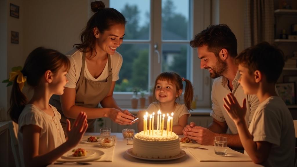 — А сейчас задувай свечи и загадывай желание, — улыбнулась Алиса, поднося праздничный торт к лицу дочери.