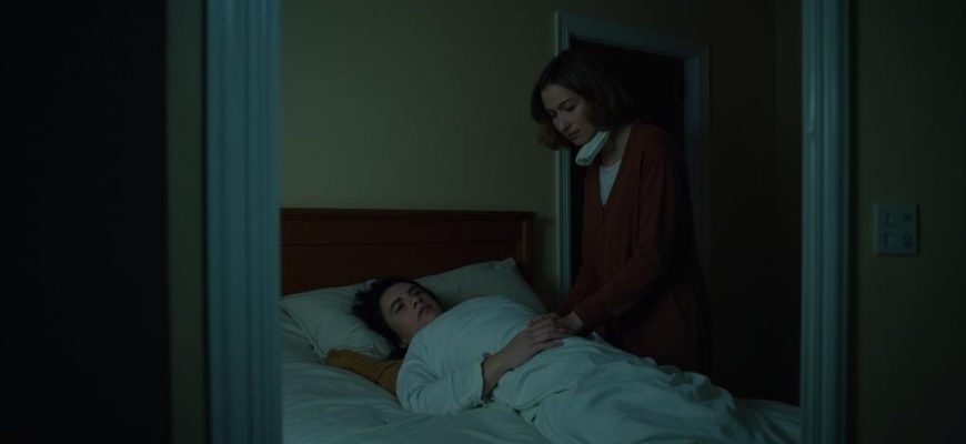 Полина лежала на кровати полностью одетая — в домашних брюках и свитере. Лицо бледное, волосы прилипли ко лбу.