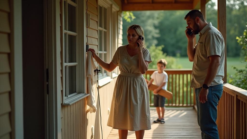 Таисия замерла у двери веранды с мокрой простынёй в руках. Игорь стоял спиной к ней, прижав телефон к уху, плечи напряжены. Голос матери был слышен даже отсюда — высокий, настойчивый.