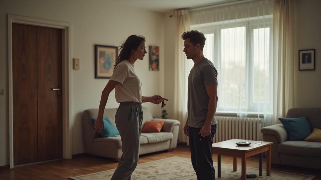 Виктор замер в дверном проёме гостиной. В его руках была спортивная сумка, а на лице — выражение человека, который понятия не имеет, что происходит. Он только что вернулся с тренировки и застал жену в состоянии, которое раньше никогда не видел. Марина стояла посреди комнаты, тяжело дыша, её обычно аккуратно уложенные волосы растрепались, а в глазах полыхал такой гнев, что он невольно сделал шаг назад.