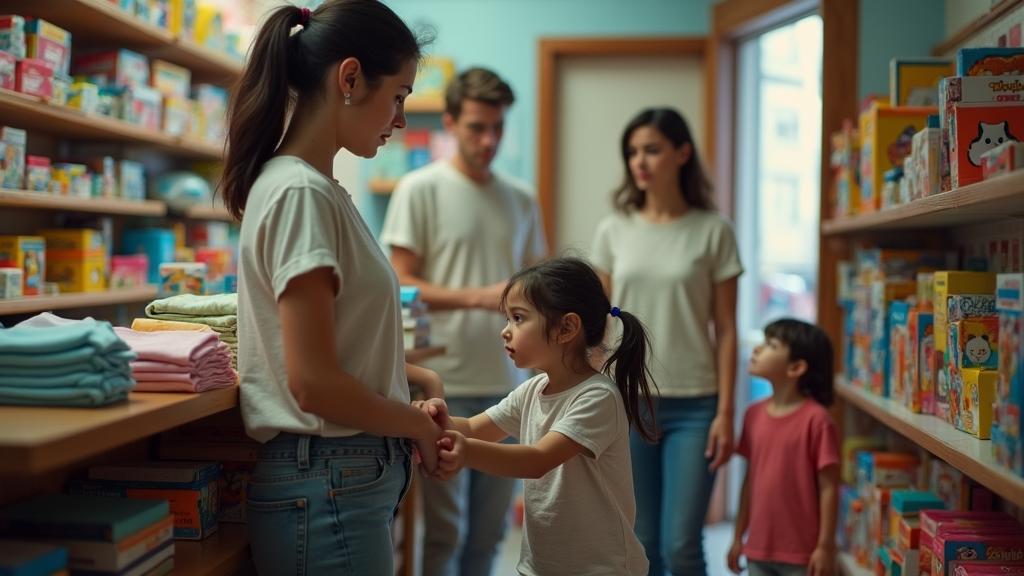 — Анечка, мы же договорились — только школьная форма для Артема, — устало произнесла женщина, пытаясь оттащить дочь от витрины. — Никаких игрушек!