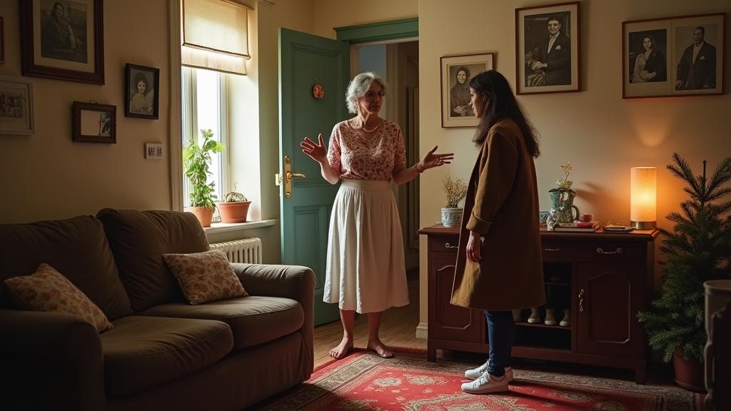 – Спасибо, – Таня осторожно поставила свою изящную сумочку на полку для обуви, оглядывая тесную, но уютную квартиру. Её взгляд задержался на пёстром ковре в коридоре и на стенах, увешанных старыми фотографиями в деревянных рамках.