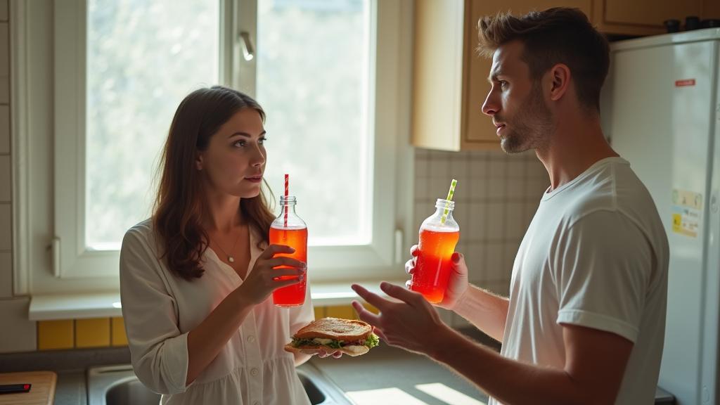 Настя, не отрываясь от своего бутерброда с колбасой, лениво прищурилась. В другой руке она держала литровую бутылку газировки, из которой через цветастую трубочку звучало характерное бульканье.