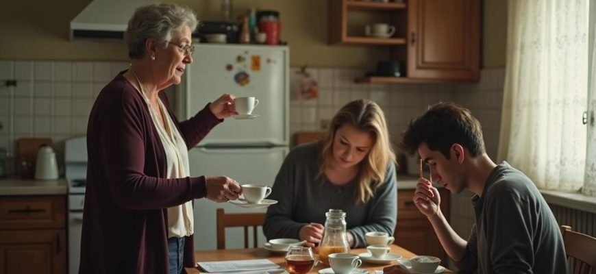 Антон сидел за столом, уткнувшись в телефон. Его плечи были напряжены, но он упорно делал вид, что не слышит разговора. Типичная его реакция на конфликты между матерью и женой — стать невидимым, раствориться, переждать грозу в укрытии из пикселей и уведомлений.