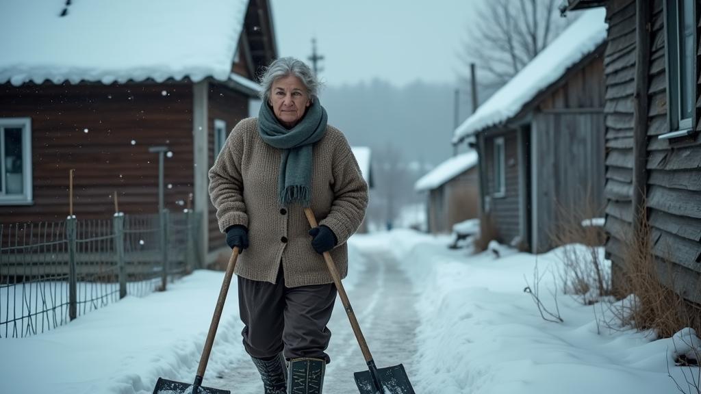 Зимой Валентине нужно спешить убирать два двора, готовить кушать, а затем на работу.