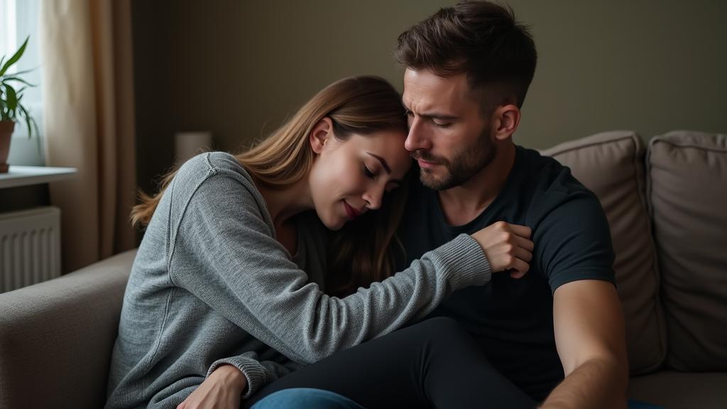 Муж обнимал супругу, и она беззвучно рыдала, прижавшись к его плечу.