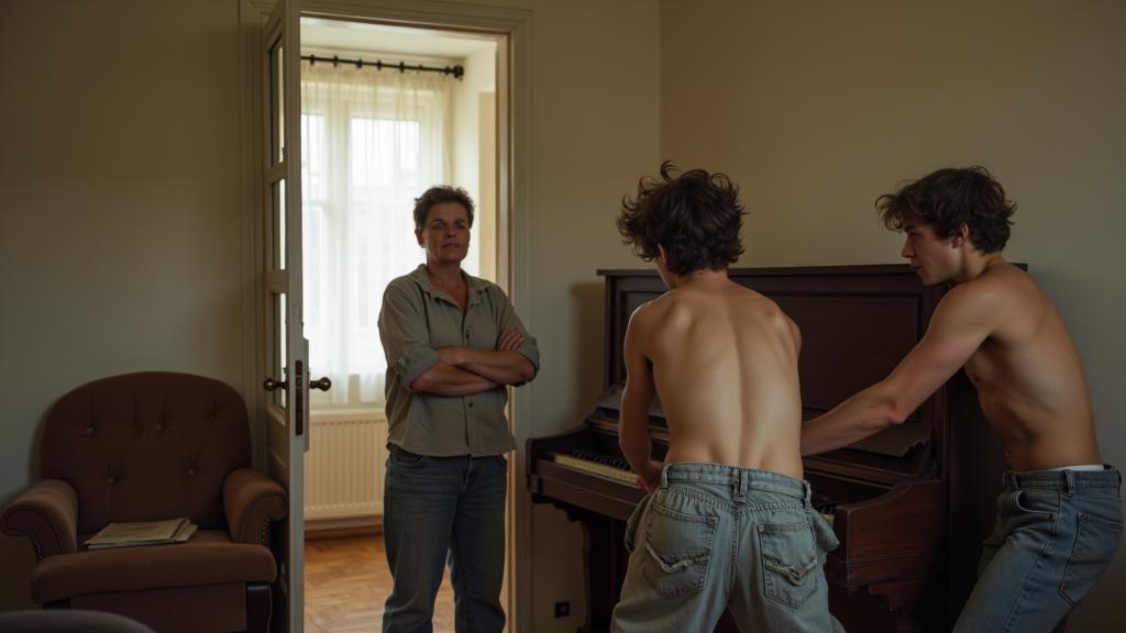 — Я что, хлюпиков вырастила, ни на что не годных?! Три здоровых лба не выволокут пианино?! У нас же первый этаж! Шагом марш, я сказала! — кричала Галя.