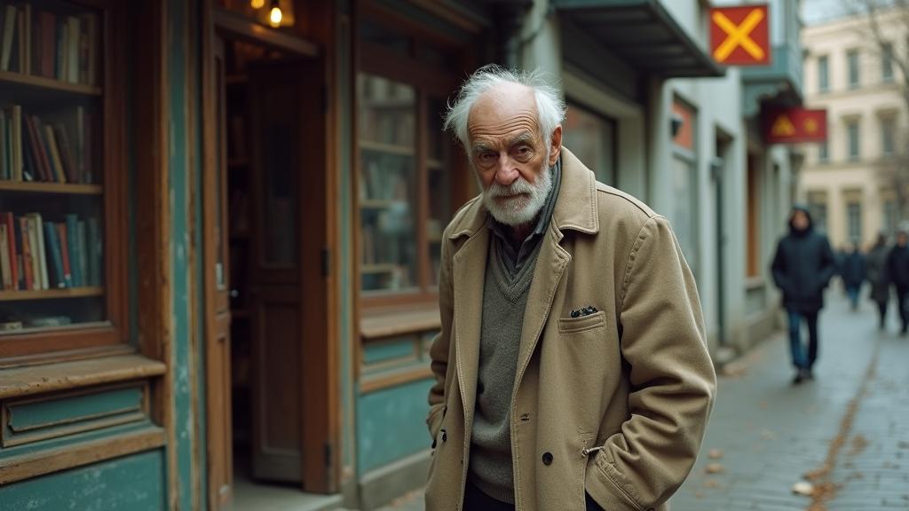 — Иди отсюда, дед, напачкал, наследил. И книги не трогай, всё равно не купишь! Иди-иди по добру по здорову! — сказала продавщица. И добавила, поморщившись, — Ох… А запах! Фу!