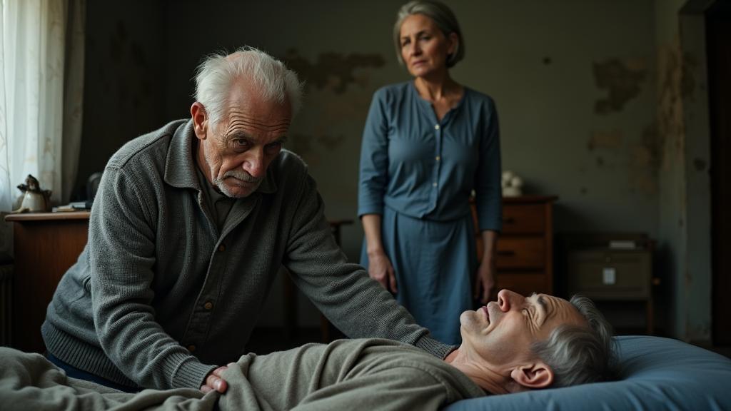 Преступники во все глаза смотрели на дедушку, который сидел на кровати, был чисто выбрит и говорил бодрым голосом, а тот усмехнулся и произнёс: