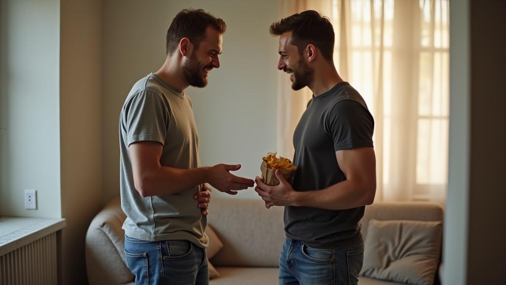 Оба друга положили баночки с йогуртом в ближайшую урну. Потом, не спеша, доели пирожки и чипсы, и пошли работать.