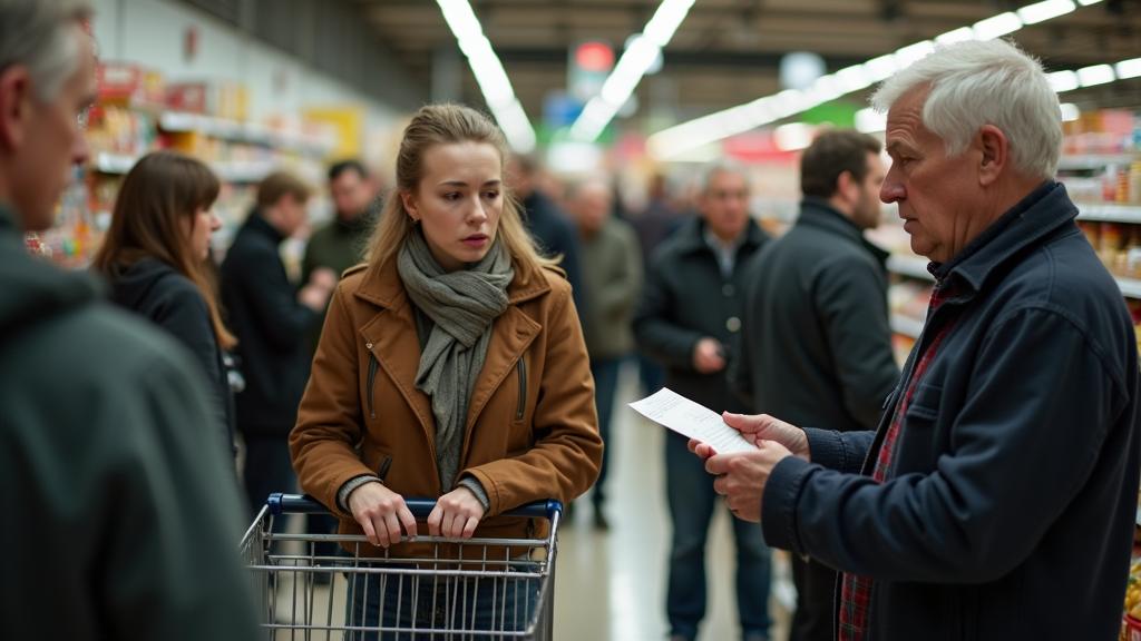 По закону подлости, дедушка, который уже оплачивал покупки, что-то забыл взять. Он глянул в свой список, чертыхнулся и ринулся сквозь очередь назад в торговый зал.