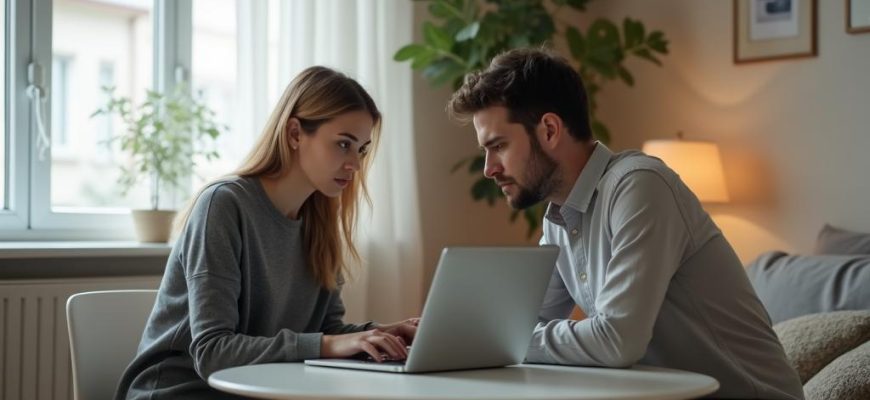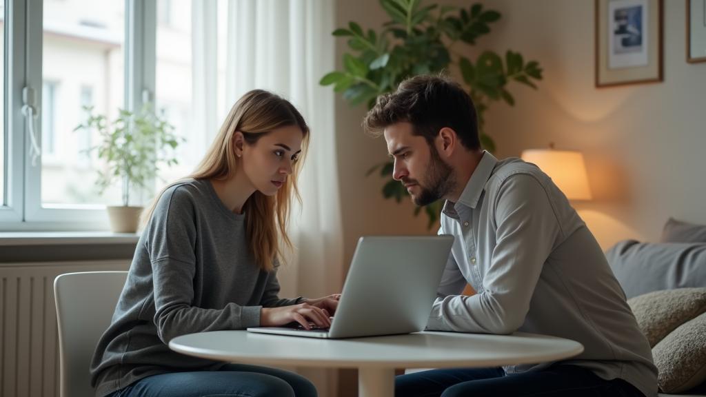 Валентина сидела за ноутбуком, выполняя работу, которую она взяла на дом. Её муж Дима подошёл к ней и присел рядом на диван.