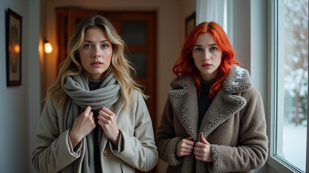 ​Та, стряхивая снег с ярко-рыжих волос, торопливо стягивала шубку.​